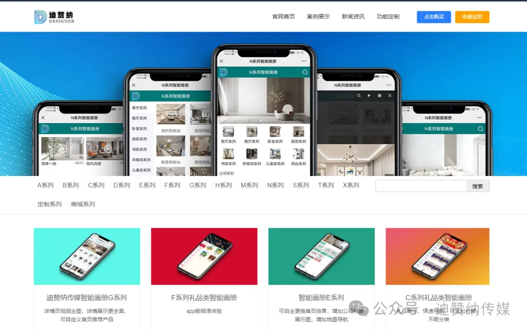 以上仅为部分截图,不仅有客户案例,还有我们为了做演示而设计的智能画册G系列,带我们迪赞纳信息的画册也被(拷贝)过去!